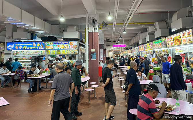Tekka Centre, located at the junction, is a building complex where you can find market stalls selling produce, small businesses selling clothes including sarees, and a food centre with a wide selection of dishes available for sale.