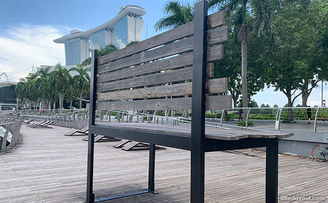 Walking along the promenade at Marina Bay, you might notice a giant, supersized bench along the waterfront.