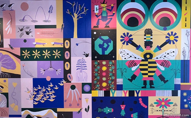 This collaboration between the two artists lets visitors admire two lush-looking wall murals inspired by the nature of France and Singapore. The two artists have reinterpreted each other’s works to playfully create an imaginative landscape filled with plants and flowers.