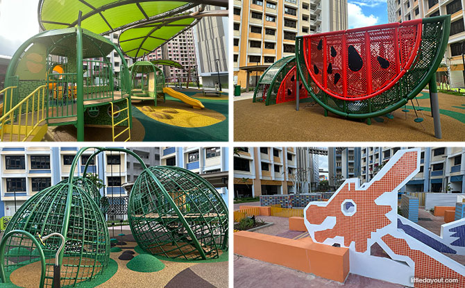 Tropical fruit is the recurring theme at the MacPherson Weave playgrounds. And one that will definitely catch the eye is the Watermelon Playground.