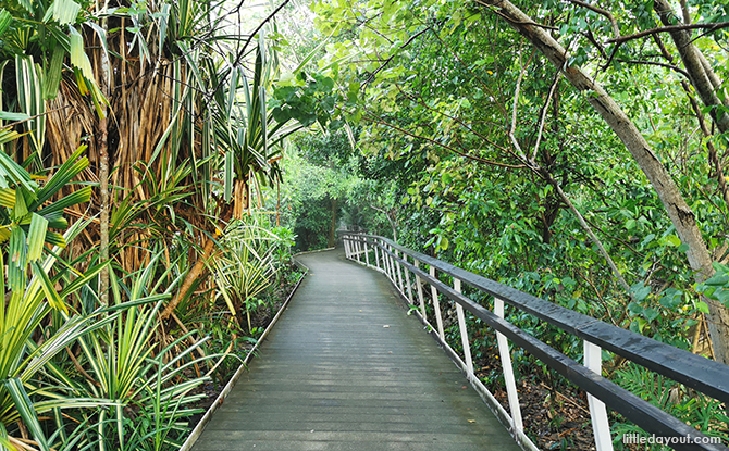 Mangrove forest awaits at Berlayer Creek. The trees and plants have adapted to growing in salty, oxygen-poor mud and host a large variety of flora and fauna. Did you know that Berlayer Creek has over 30 species of mangrove plants? This rich habitat draws plenty of unique animals such as Giant Mudskippers, Tree-climbing Crabs, Archerfish, water birds like Little Heron, White-breasted Waterhen, Collared Kingfisher, Owls among many others.