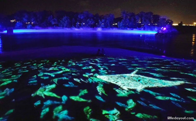 The multisensory light show spans across a 400-metre stretch of Siloso beach with projections on two islets.