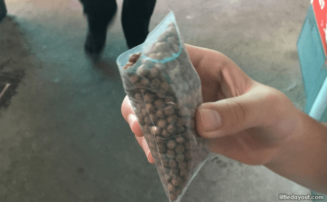 For $4 per child, little ones can get a net and a bucket to scoop out tiny fish from a little manmade stream built between the ponds. They get to bring home the fish at the end of the longkang fishing activity.