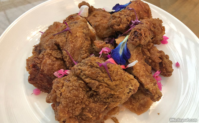 Created out of his six-year-old son’s love for fried chicken, Senior Sous Chef Danny Yong first experimented with making the local favourite Har Cheong Gai (fried prawn paste chicken) at home.