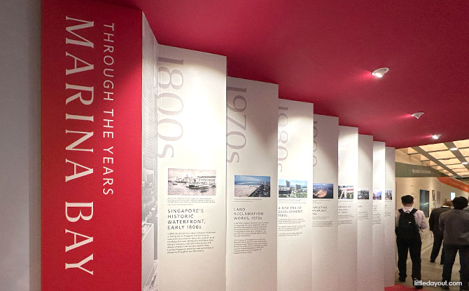 Step into a time tunnel where panels provide a quick look at the past of the Marina Bay area from the 1800s to the present day.