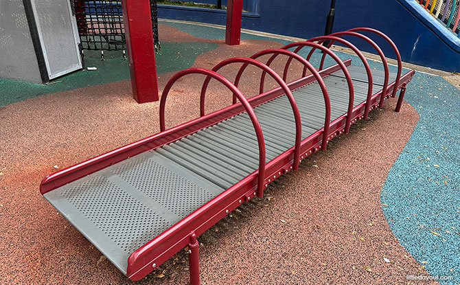 A wavy walkway, which looks like pump track as you would find at Cyclist Park, is another fun spot where kids can get active.
