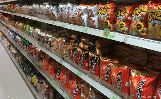 Annyeonghaseyo! All things Korean are so popular nowadays that you will find Korean products even at large supermarket chains. However, there are also plenty of Korean marts (at last count, more than 15), specialising in harder to find Korean goods. The chains include Shine Korea, Sol Mart, Seoul Mart and Korean Mart Lotte. The Shine Korea outlet at Marina Square has a large variety of goodies. You will find drinks such as Black Tea Latte and Persimmon’s Leaves Tea on the shelves while snack-lovers can pick up a pack of O!Karto and other munchies too. There is even a corner with Korean cookware on sale.