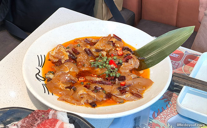 The Meow Signature Spicy Beef looks like a vibrant dish at first glance, with a variety of colours from the chilli and pickled vegetables, to the marbled beef.