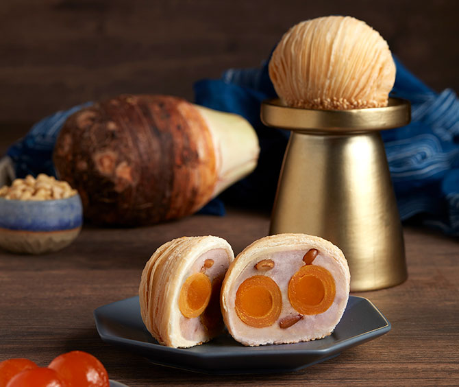 Experience the classics reimagined, including favourites such as the Baked Double Yolk and Baked Single Yolk in White Lotus Paste. Two new additions are added to expand Golden Peony’s repertoire – Black Sesame with Melon Seeds and Traditional Baked with Premium South Jujube Dates. Savour the rich taste of melon seeds embedded in the crust of the Black Sesame mooncake, or choose to indulge in honey and earthy undertones of the jujube dates. Inspired by Teochew mooncake traditions, the collection also features a handcrafted sweet potato filling encased in a light and crispy filo pastry.