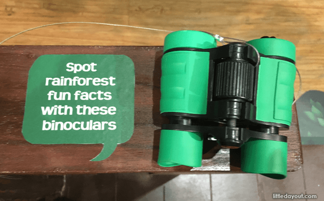 At the “treehouse” in the centre of the room, kids will find binoculars to help them spot rainforest factshigh up in the “canopy” around the room.