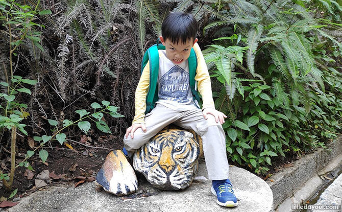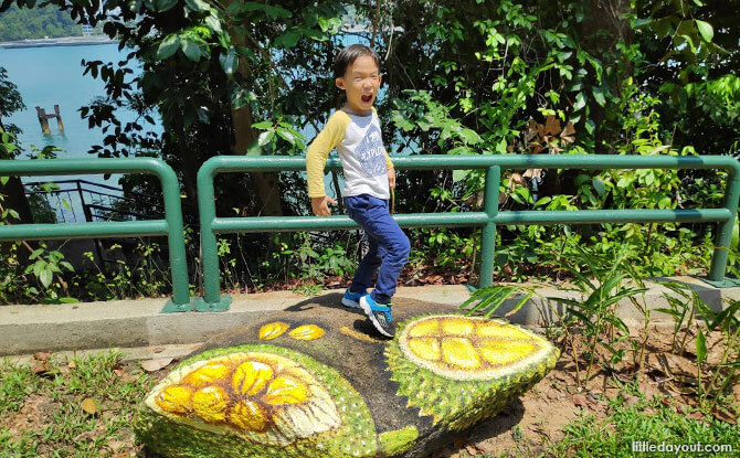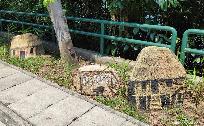 Children would have tons of fun spotting the familiar tropical fruits and spices, even animals found in Singapore then as they traipse along the path. From a tiger (using two different rocks!) to the palm civet cat and chempedak to durian, these are tropical delights that would be frequently spotted during the kampong days.
