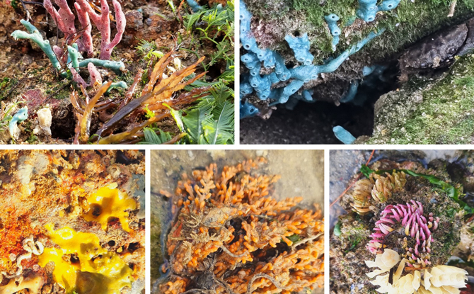 Other lifeforms encrusting the rocks include tiny mussels, fan worms, rock oysters and barnacles. Check out the hard corals, sea urchins, ascidians, clams, drills and more!