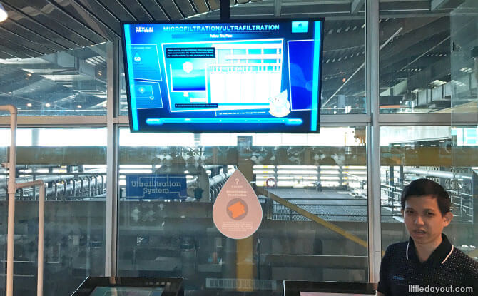 At a viewing gallery, the guide provides a walkthrough of the three-step process behind how NEWater is produced.