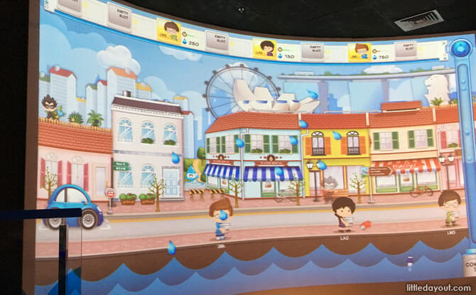 Among the interactive exhibits is a multi-person game, Water Heroes. In the game, each player’s avatar has to try to collect as many water droplets as possible to score points.