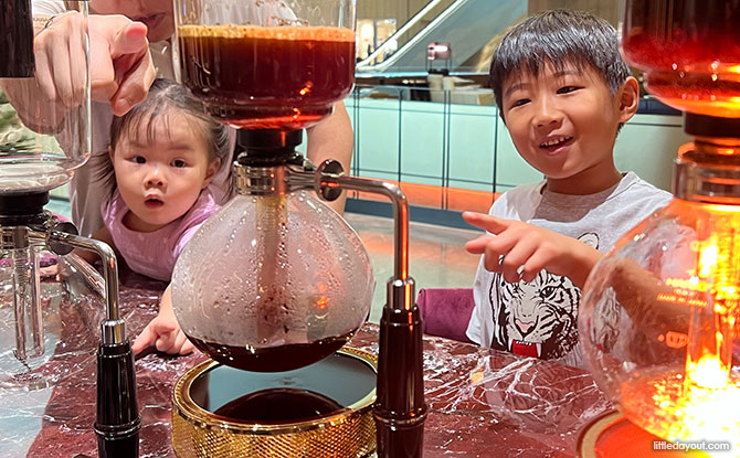 The kids were intrigued as they watched the upper chamber bubbled and brewed away as our signature coffee beans were extracted into an aromatic cuppa. The brew felt smooth, sweet with a medium body, and lingering flowery finish – a great start to our personalised experience ahead.