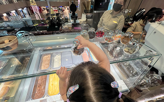 Little Pea was spoilt for choice by the variety of artisanal handcrafted ice-cream flavours such as Hazelnut, Hojicha premium, Cookies & Cream and Blue Milk (Condensed Milk). Little Pea indulged in her yummy cookie topping before tucking into her creamy Cookies & Cream ice-cream cup.