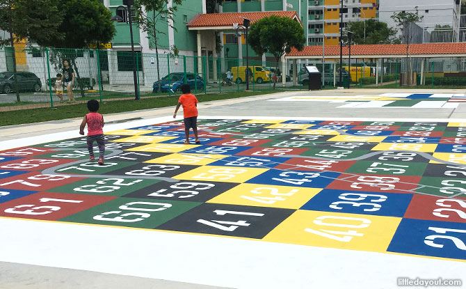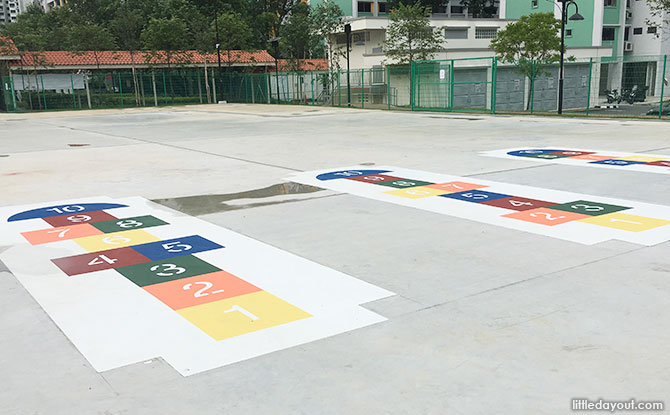 There are hopscotch markings too. These offer kids a chance to enjoy some simple play time with their friends and family.