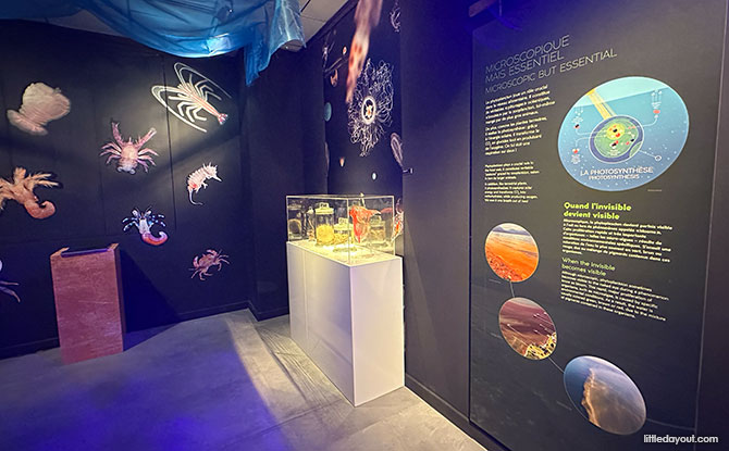 One of the most important organisms in the ocean are plankton which not only serve as a food source for marine life but also help to absorb carbon dioxide. Learn about their role in the ocean at the penultimate zone of the exhibition.