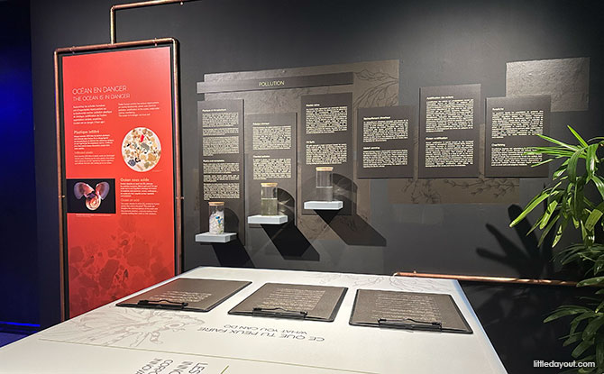 The last section of the exhibition provides a look at the challenges that the ocean is facing today. It also challenges visitors to think about what can be done to combat marine pollution.