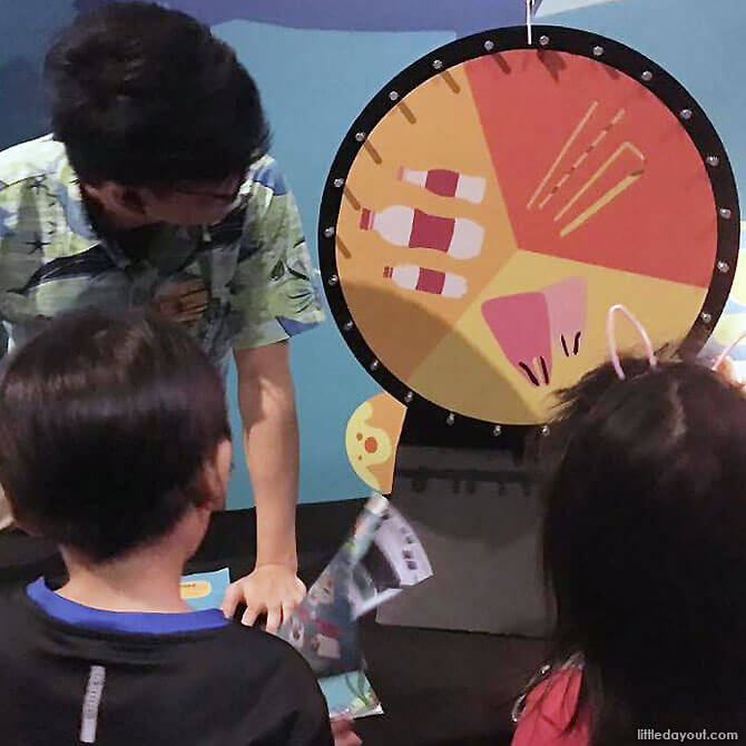 After entering the aquarium, the little ones jumped straight into the Ocean Challenge, a series of three game stations distributed throughout the aquarium where they learnt about plastic pollution through simple carnival-style games.