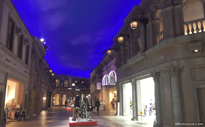 Adding to Venus Fort’s atmosphere is its ceiling which is painted to resemble the sky. Those who have been to the Grand Canal Shoppes at The Venetian in Las Vegas would find this type of sky-ceiling familiar.