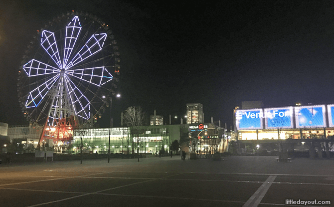 The shopping mall is part of the Palette Town complex at Odaiba, Tokyo. This is marked out by the giant Ferris wheel. It also houses the Historic Garage section of Toyota Mega Web Car Showroom and is next door to the City Showcase section.