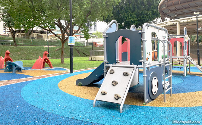 Just beside the old school animals is a more conventional children’s playground with a short play structure.
