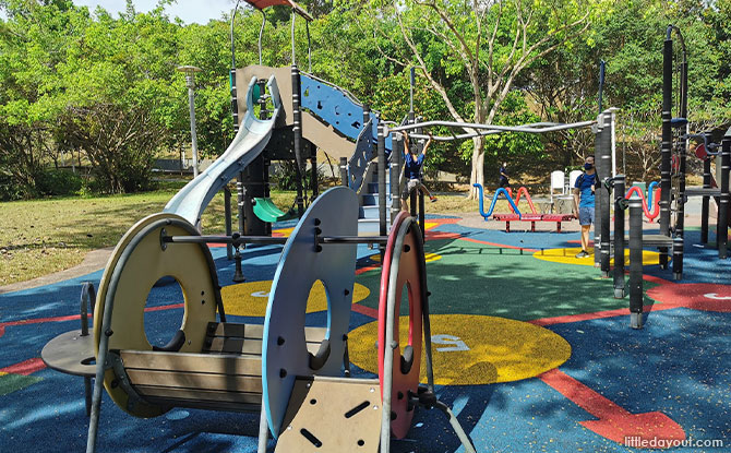 There might be only one playground but the park has a lot of space and paths to explore. It also has eateries nearby if you feel peckish or thirsty. Just lather on the sunblock put a hat on and get your wheels ready for exploration time!