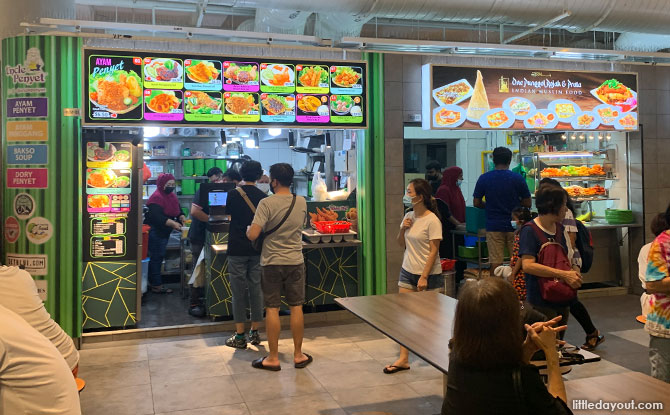 Entering the hawker centre from the entrance closest to the escalator, the first row of food stalls include an ayam penyet stall ($6.50 for a smashed chicken set) as well as an Indian Muslim Food stall, One Punggol Rojak & Prata. You can get Indian rojak at the Indian Muslim stall too.