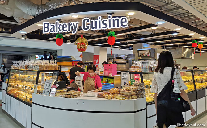 Bread fans will love Bakery Cuisine for its spread of pastries, buns, cakes and even sourdough. Right next to it is a fried snacks store with fishballs, curry puffs, nuggets, kueh and more. It is located just next to the exit to the MRT station, making it a convenient spot to pick up some bread either when entering or leaving the One@KentRidge.