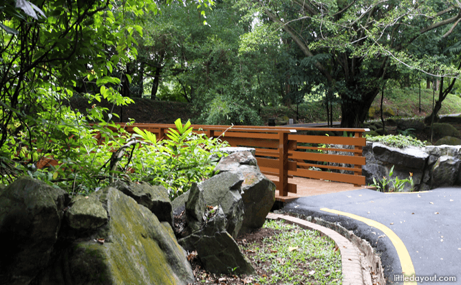 North of the pond is the Bukit Panjang Neighbourhood 5 Park. This pretty park is laid out across a gentle hillock and crisscrossed with winding paths. It is a perfect companion park to Pang Sua Pond, providing various walking paths that descend towards the pond.
