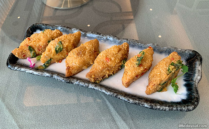 The first item we had was the Crispy Dough Fritter Stuffed with Seafood Paste tossed with Salted Egg Yolk from Seafood Paradise.