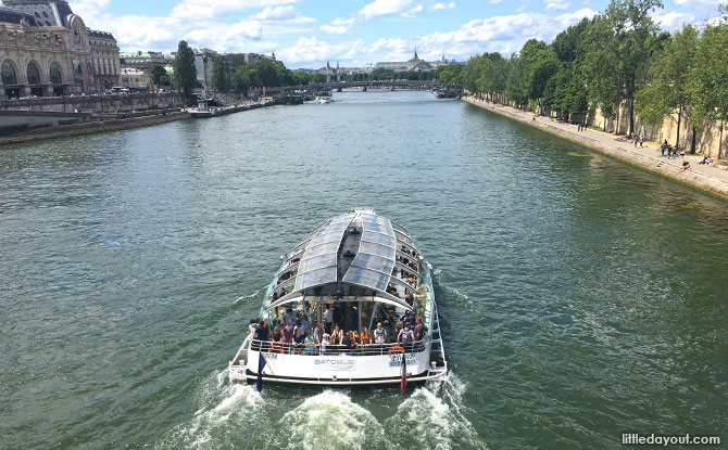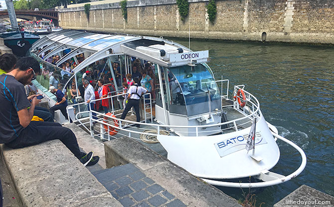 The left bank of the Seine beside the Notre Dame is a popular departure point for river cruises. We bought tickets along the embankment for the BatoBus service.