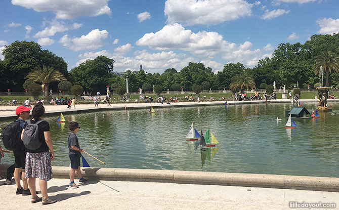 An activity for children at the Luxembourg Gardens is sailing wooden boats at the central pond in front of the Luxembourg Palace. These can be rented and nudged around the pond as the wind fills their sails.