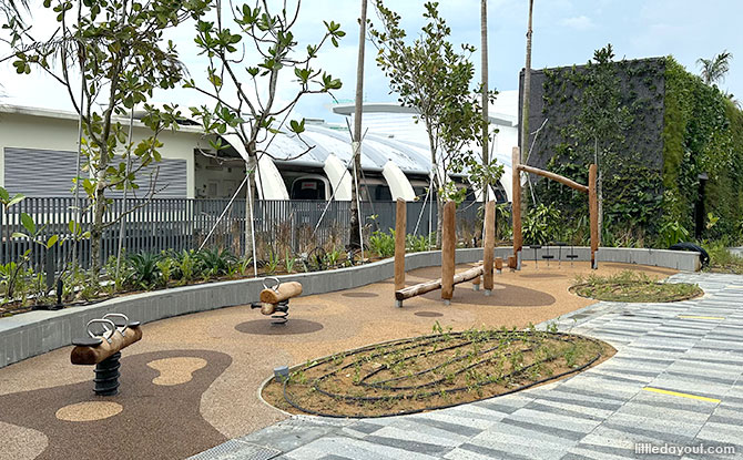 The second Pasir Ris Mall playground area is just a short distance away from the first. This consists of more naturalistic elements such as a wooden balancing log and wooden stepping stone for kids to practise their balancing skills.