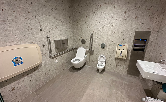 The diaper changing and nursing rooms, located on Basement 1, Basement 2, and Level 2. Equipped with basins, hot water dispensers and changing stations, these facilities offer a clean and hassle-free experience for both parents and babies.