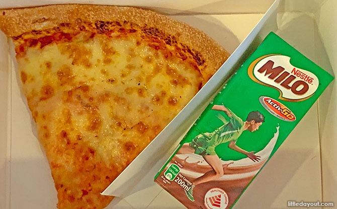 The Cheesy Cheese Pizza features mozzarella and parmesan cheese, baked on a layer tomato puree that has been spread out on a bed of soft dough. In addition to the slice of Cheesy Cheese Pizza, the Pezzo Fun Box Kids Meal also comes with a packet of Milo, every kids’ favourite beverage.