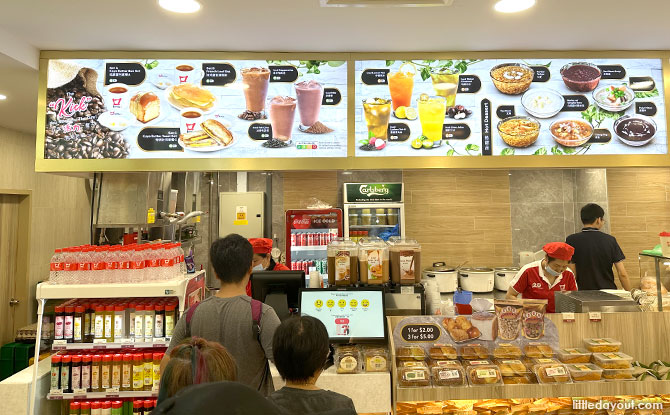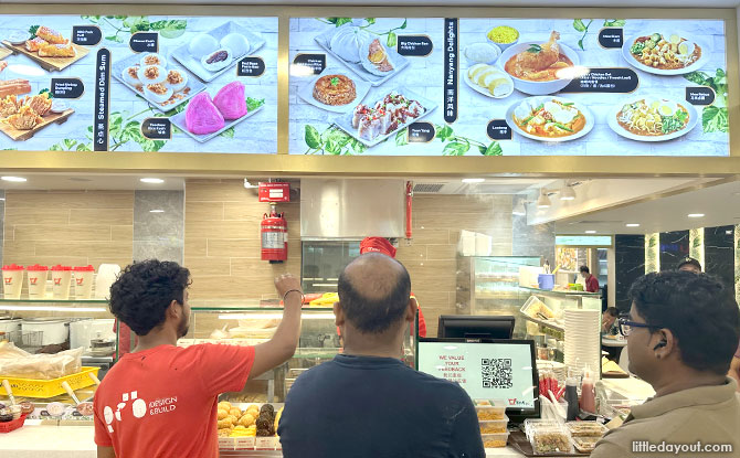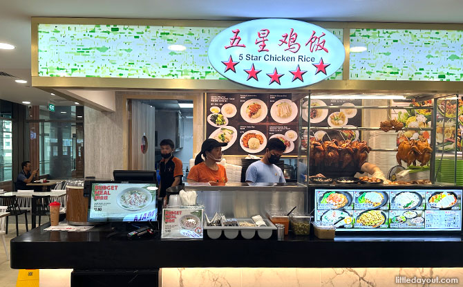 All food stalls at the Koufu food court offer a budget meal option priced at $3 or below, and the drink stall offers coffee and tea without milk at $1 each.
