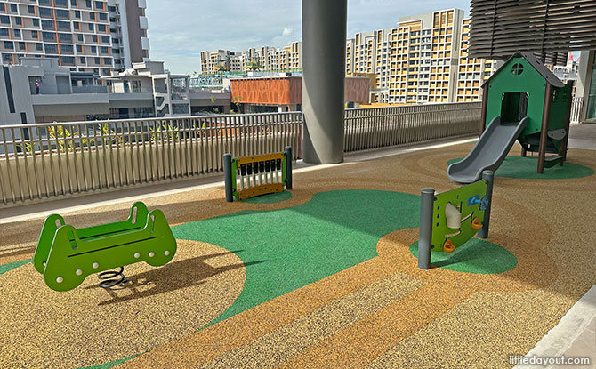The playground is quite a simple one and suitable only for very young children. Thankfully, there is a larger outdoor playground at Tengah Farmway, just in front of Plantation Plaza.