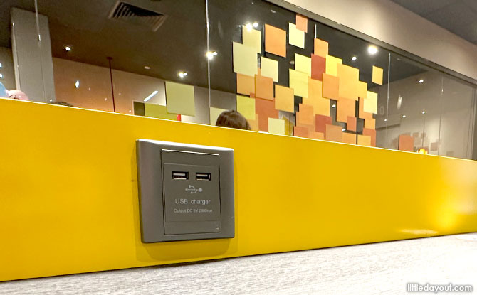 You will find USB charging outlets at the McDonald’s.