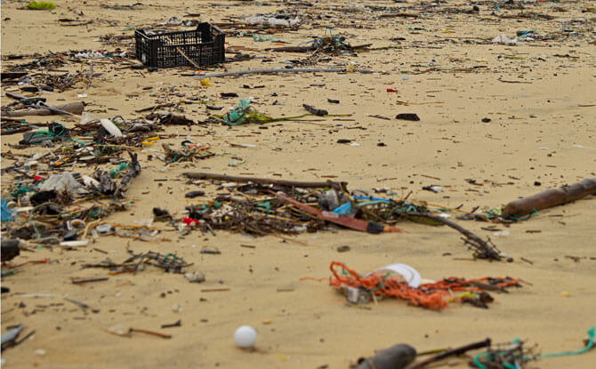 Greenpeace says that 12 million tonnes of plastic enter the ocean each year, the equivalent of one rubbish truck every minute. A common part of this is single-use plastic packaging for food and drink. One source of this is the plastic litter left on the beach by visitors. Even trash thrown into canals and drains inland can find their way through the waterways to the ocean.