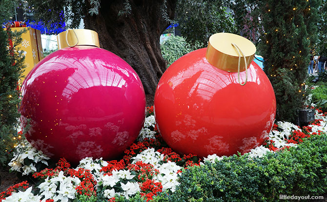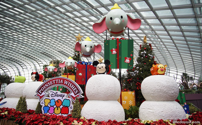 There are plenty of photo opportunities around the Poinsettia Wishes Featuring Disney Tsum Tsum. Present boxes serve as packaged backdrops to snap memories to bring home from Gardens by the Bay’s Flower Dome.