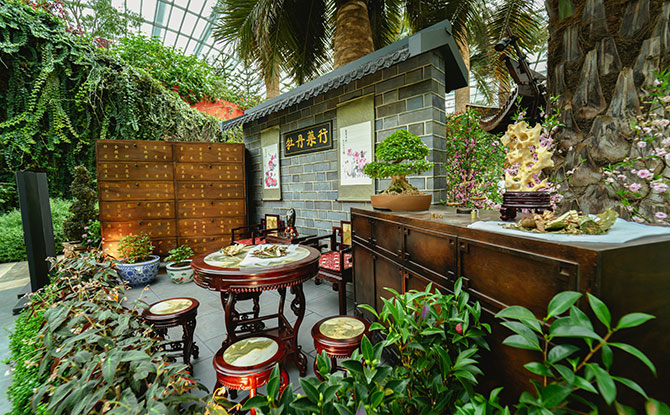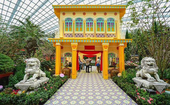 In keeping with this theme, there is a recreation of a Chinese garden in reference to the peony’s roots in Chinese history. Part of the flower display also features a Peranakan shophouse, representing the evolution of the flower to become a motif favoured by the Chinese Peranakan community in Singapore.