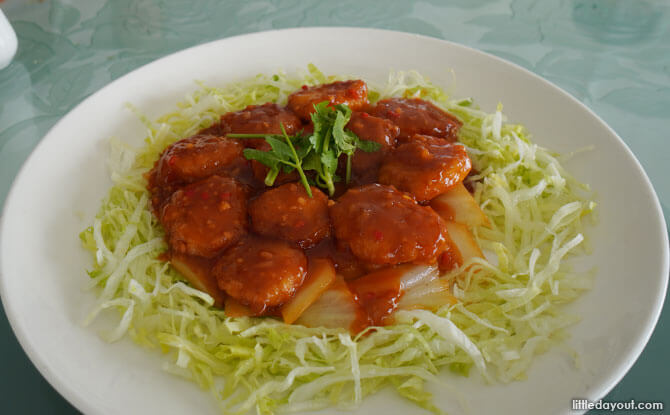 The Braised Fresh Scallop with Water Chestnut in Chilli Sauce is another seafood dish worth having. The scallops are pan-fried till brown and braised in a sweet spicy sauce. The added chestnuts symbolically represent specks of gold, and the preparation of it allowed the scallops to keep their chewy texture.