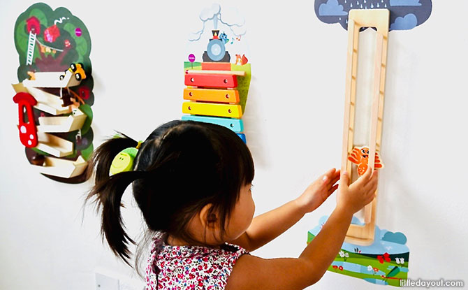 And you know how toddlers can’t sit still? Well, the VertiPlay Wall Toys are perfect for my cannot-sit-still daughter since they allow her to stand and play… Then she gets to run off and return to them a minute later!