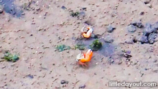 At Chek Jawa, there are two main boardwalks and a lookout jetty that is open to visitors. The kids decided on the Coastal Boardwalk path. This consisted of both a footpath and a boardwalk that led us around the shoreline of Chek Jawa. From the boardwalk, the kids enjoyed the cool sea breeze and even though it was high tide, the shoreline was still teeming with wildlife. The kids managed to spot mudskippers and colourful fiddler crabs around the mangrove swamp.