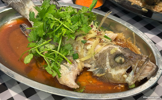 The Steamed Grouper with Rice is priced at $10.70 for an entire fish. Served in a light broth along with shreds of ginger, it is a satisfying meal for those who would like something more delicate and light.