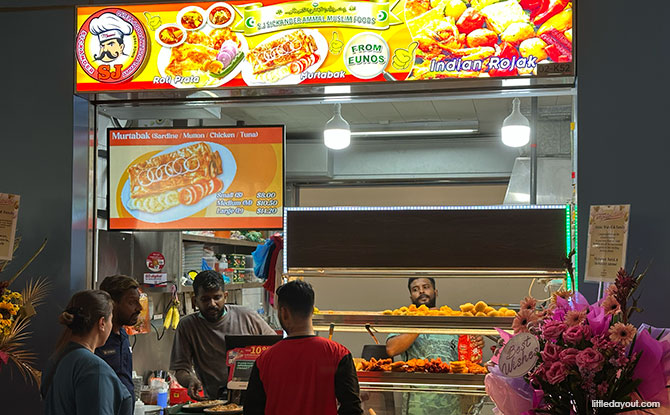 Enjoy over 30 colourful, crispy, crunchy varieties to make your own Indian rojak. The stall also offers roti prata and murtabak.
