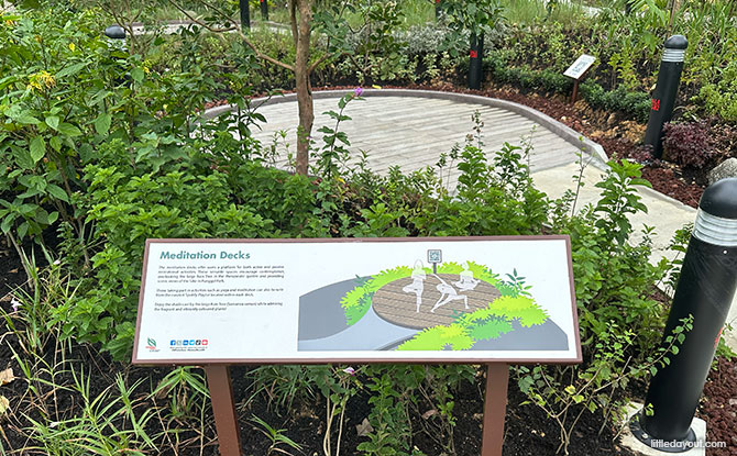 At the passive zone of the Punggol Park Therapeutic Garden, you can find meditation decks. These are designed to be used by those who wish to unwind with activities such as yoga.