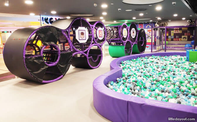 One is the Ben 10 themed structure and the other is connected to the ball pit. Older ones would enjoy navigating the slightly darker Ben 10 obstacle course, through the tunnels or even hiding in it. Most would attempt the obstacle course at the ball pit, which has swinging elements, cushioned obstacles, climbing walls, climbing nets and so on.